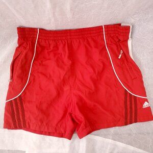 ~ Brand: Adidas ~ Colour: Red w/white & red striping ~ Size: US L ~ Draw-string closure and metal pocket zippers
