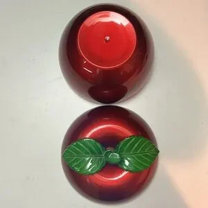 Vibrant red apple-shaped container with a green leaf lid.