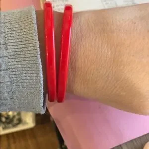 Add a pop of color to your outfit with this vibrant red bangle set. Perfect for any occasion.