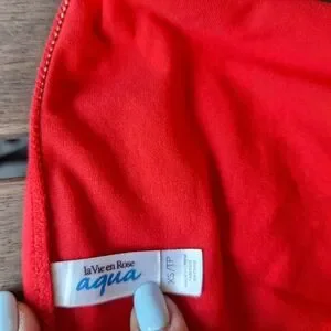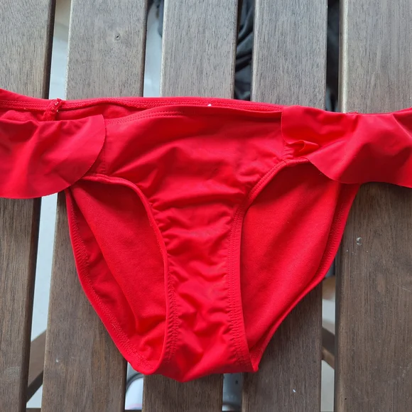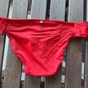 Vibrant red bikini bottom with a stylish design. NWOT. Perfect for beach days.