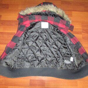 Classic Canadiana - red and black wool-look (cotton/poly blend) vest with hood