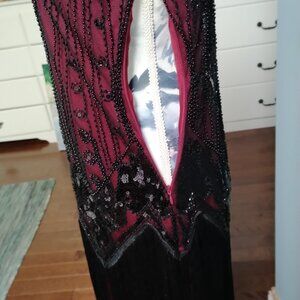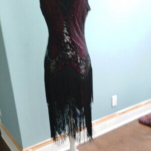 Red & Black Fringed, Beaded, Sequin 1920's Flapper Dress, size XS