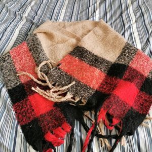 Red Black and Tan Tartan Plaid Fuzzy Soft Scarf Wrap