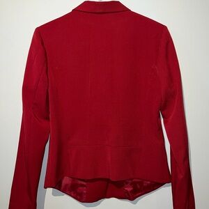 Red blazer jacket with a shawl collar. Two button closure. Two pockets. Fully lined. Red blazer jacket with a shawl collar.