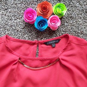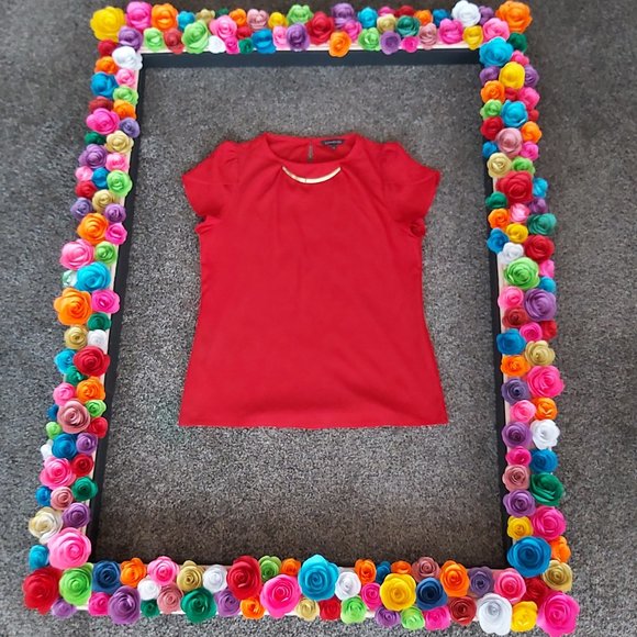 Red Blouse, Gold metal accent, Pre-loved, Size Large, Length- 25inches