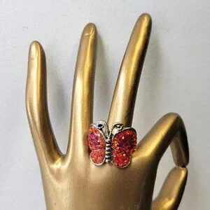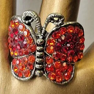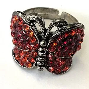 Tiny red rhinestones on this adjustable nad Butterfly Ring