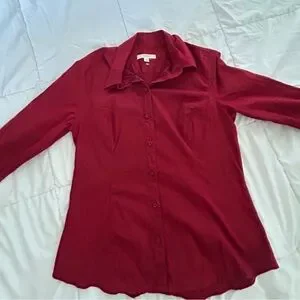 NWOT Stylish red button-up shirt with long sleeves. Has buttons to loosen the arm cuffs.