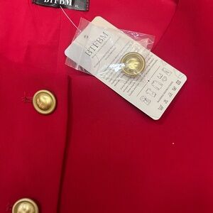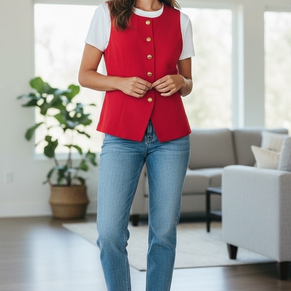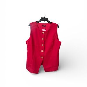 Stylish lined red vest with gold buttons. Perfect for layering.