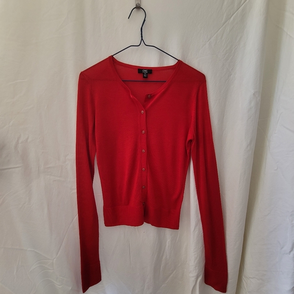 This vibrant red cardigan is perfect for layering. Featuring a classic button-up design, it adds a pop of color to any outfit.