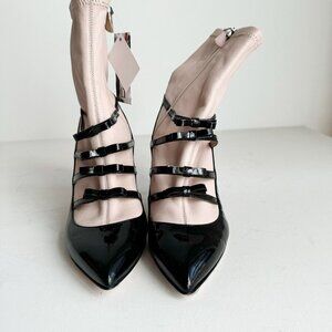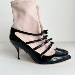 Red By Valentio Bow Detail Place PAtent Leather Nude beige Illusion Booties 37