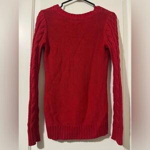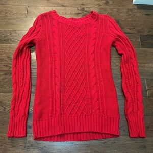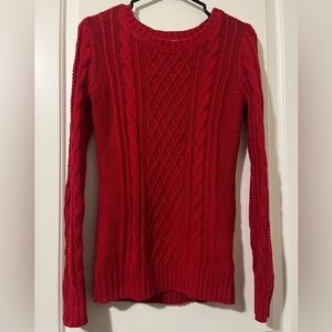 Red Cable Knit Crew Neck Pullover Cotton Blend Sweater