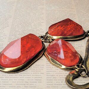 Gorgeous Vintage Bold Red Large Jewel Cabochon like Stones Necklace