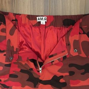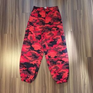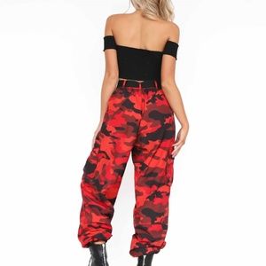 Stand out with these stylish red camo cargo pants. Perfect for a bold, trendy look.
