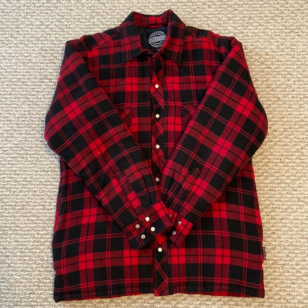 Red canadiana jacket perfect for fall or layering for winter. Size small but fits in between small and medium