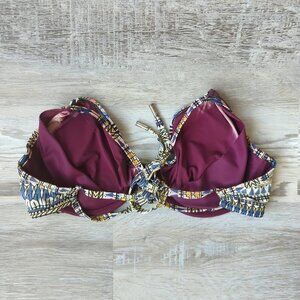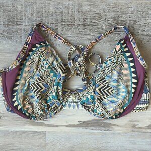 This is an underwire bikini top in a multicolour tribal print by Red Carter.
