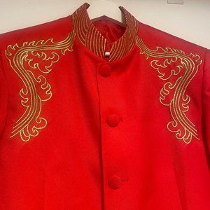 Red Chinese Wedding Suit Changshan with Gold Embroidery China Asian Traditional