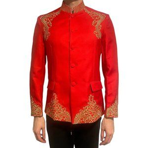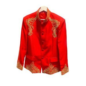 Red Chinese Wedding Suit Changshan with Gold Embroidery China Asian Traditional