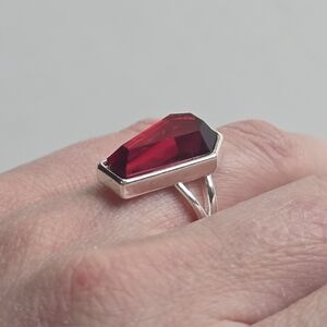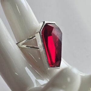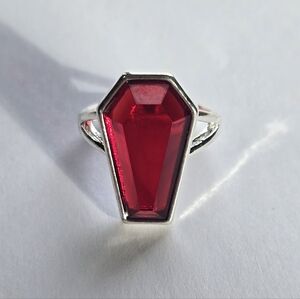 Gothic metal Coffin ring w/ a blood red faceted faux gem