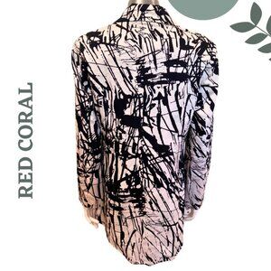 Red Coral Abstract Zip Front Jacket | Longline Lightweight Layer Size Medium