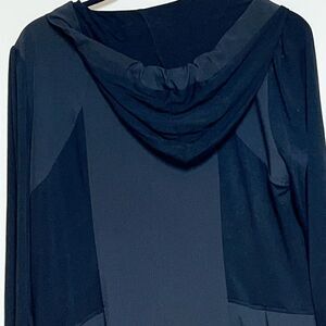 Red Coral Long Black Hooded Lightweight Zip Front Trench Coat Womens Sz S 12/14