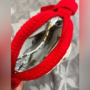 Adorable red crochet bag for kids featuring a cute character design. Perfect for carrying small essentials. Brighten up any outfit with this charming accessory. Brand new with yarns. Please see the measurements from the pictures.