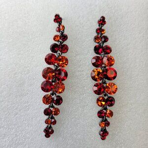 Red Crystal Drop Earrings Long Dangling Crystal Earrings