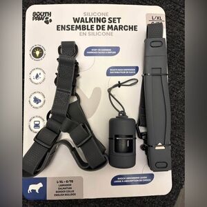 Stylish red dog harness. Features peace, love, and paw patch. Comfortable, breathable and durable. Like new, was worn when my pup was still growing, soft for comfort, great for sensitive dogs.