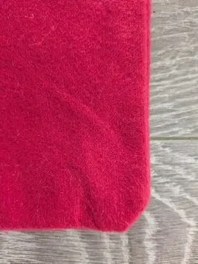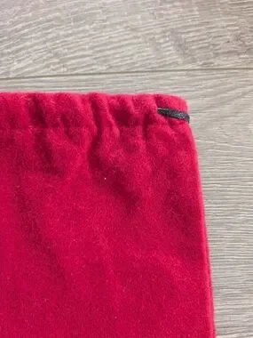 Plush red drawstring dust bag. Soft fabric with top drawstring closure. Simple, solid color design. Great for storing accessories or small items.