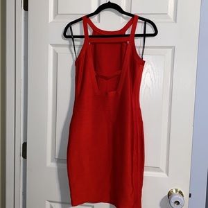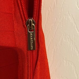 Beautiful red dress. Size large. 83% Viscose. 16 % polyamide. The material is very stretchy. It has a zipper on the side. Marciano Dress