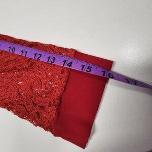 Red Ruched Dress with Three Quarter Lace Sleeves