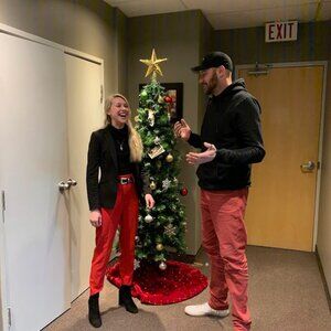Details: Bold red trousers with a matching belt. Perfect for making a statement in any setting.