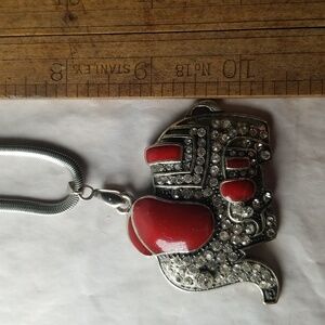 Red Enamel And Rhinestone Elephant Pendant
