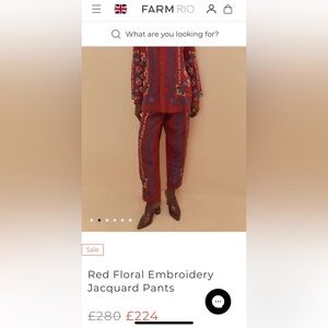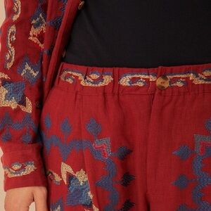 Red Floral Embroidery Jacquard Pants 💯 linen NWT