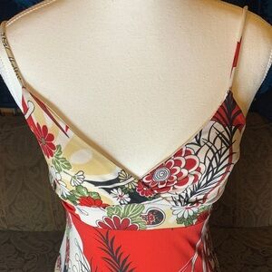 Red Floral Midi Dress Sundress Beach Resirt Vacation Sexy Y2K Soft Flowy Small