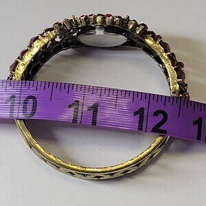 Red Floral Rhinestone Watch Cuff Band Round Face Ornate Fashion Watch - NEW !
