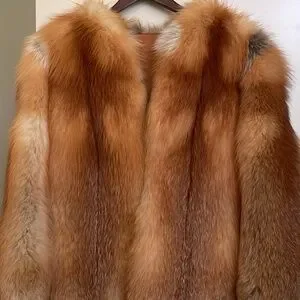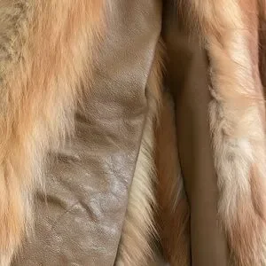 Incredible condition match book markings on this vintage red fox coat, leather trim. I’m a small. Fits well. Oversize luxurious look.