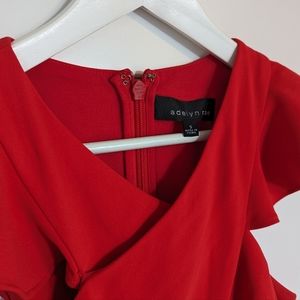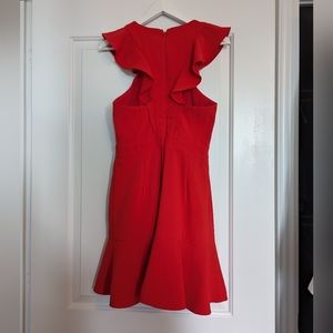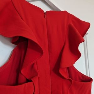 Gorgeous red dress with crossover bust and frill details.