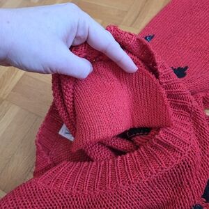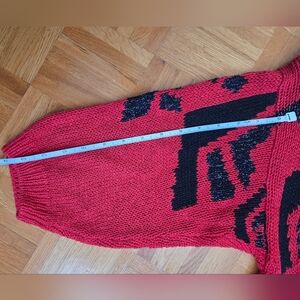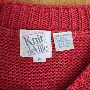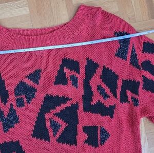 Vintage Deville vibrant red sweater featuring a bold geometric pattern. Perfect for adding a pop of vintage, fun and color to your wardrobe.