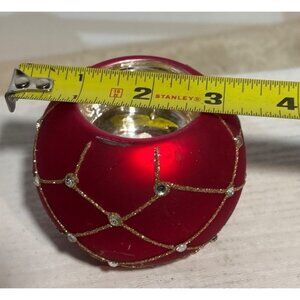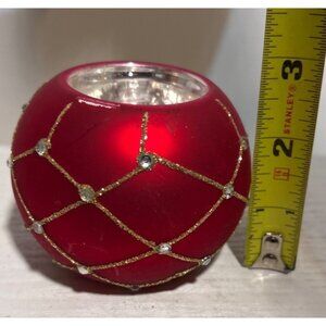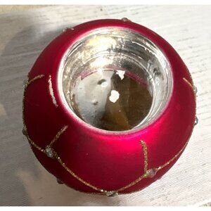 Red Glass Tealight Holder With Gold & Silver Glitter Accents