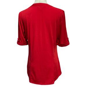 Red Half Sleeve Button Up Blouse w/ Pleat Detail