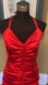 Stunning red halter neck dress with ruched detailing. Perfect for a night out. Shown fitting perfectly on a size 6 mannequin whose measurements are bust 34” waist 28”. Recommended for sizes 2,4,6.