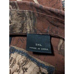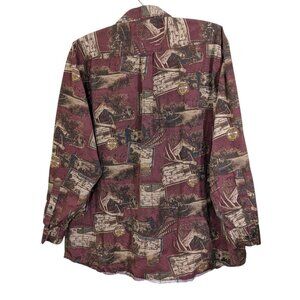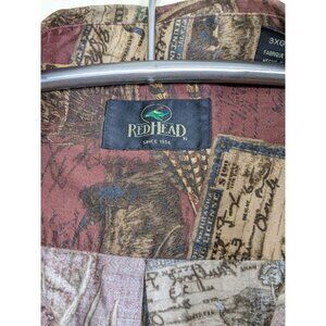 Red Head Button Down Shirt Mens 3XL Hunting Theme Long Sleeve Maroon Cotton