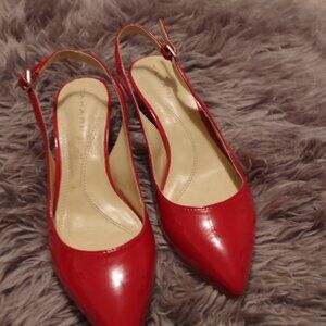 Red high heel Tahari patent leather ladies shoes. Kitten heel.