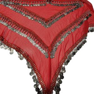 Red Hip Scarf 4 Rows Coin Tassels Long and Wide Wrap Scarf Belly Dance Skirt NEW