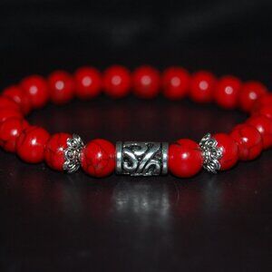 Red Howlite Bracelet,Red Beaded Bracelet,Howlite Bracelet