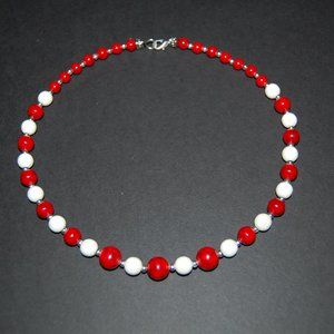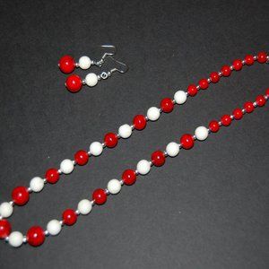 Red Howlite Necklace and Earrings Set,Red and White Howlite Gemstone Beads,Red and White Necklace and Earrings,Retro Red and White Necklace