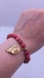 Red Imperial Jasper Stretch Beaded Bracelet with a Goldtone Leaf Charm