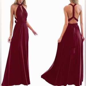 Infinity evening dress, create more than 24 different styles - 2 long shoulder straps and maxi skirt - for halter dress, tube dress, spaghetti strap dress, off shoulder dress, etc.