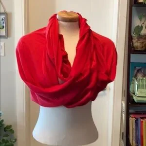 Simple red infinity scarf. Can be worn many different ways.