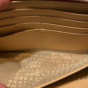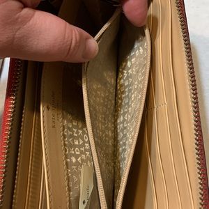 Red Kate Spade wallet in GUC. Wallet has a few marks on the outside of wallet, as well as a few stains inside of wallet (please refer to pictures).